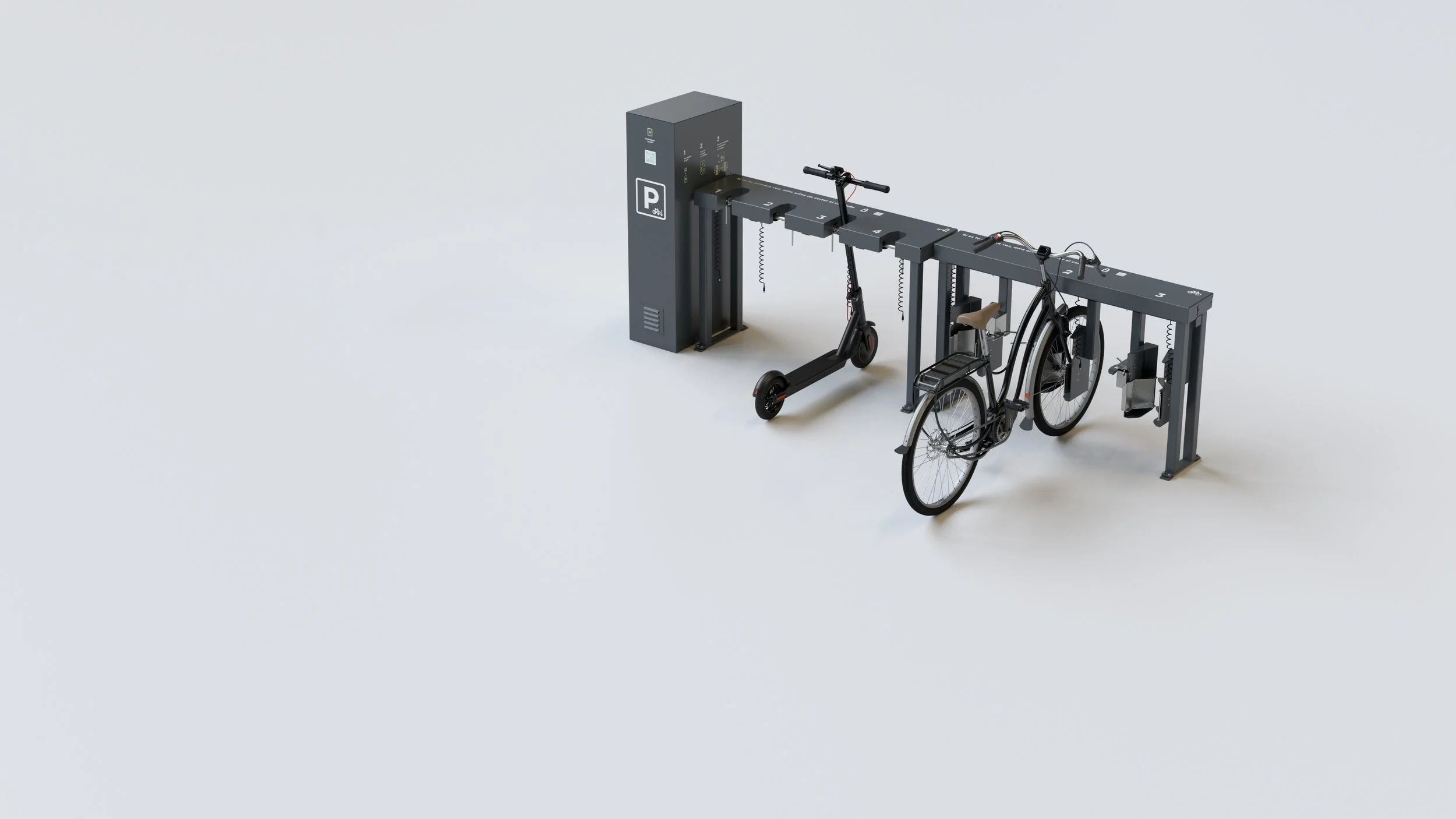 Estaciones modulares para aparcamiento y recarga de patinetes y bicicletas